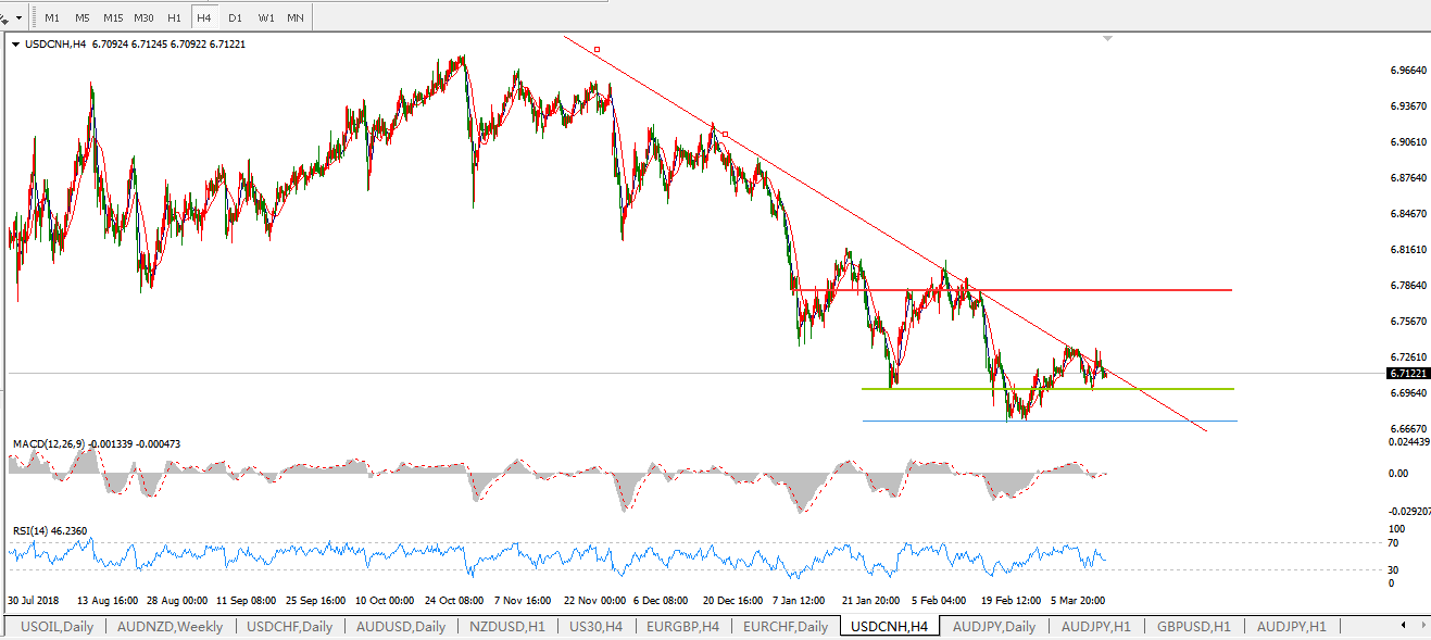 美元兑人民币USDCNH  4小时图: