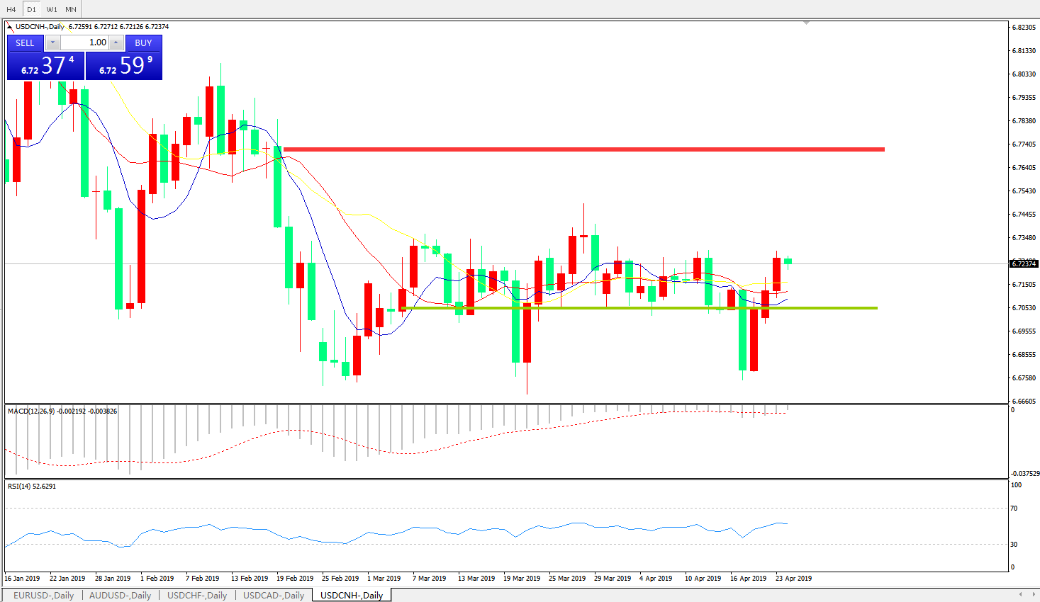 交易策略: 在6.6990之上,看涨,目标价位为6.7845,然后为6.8185。