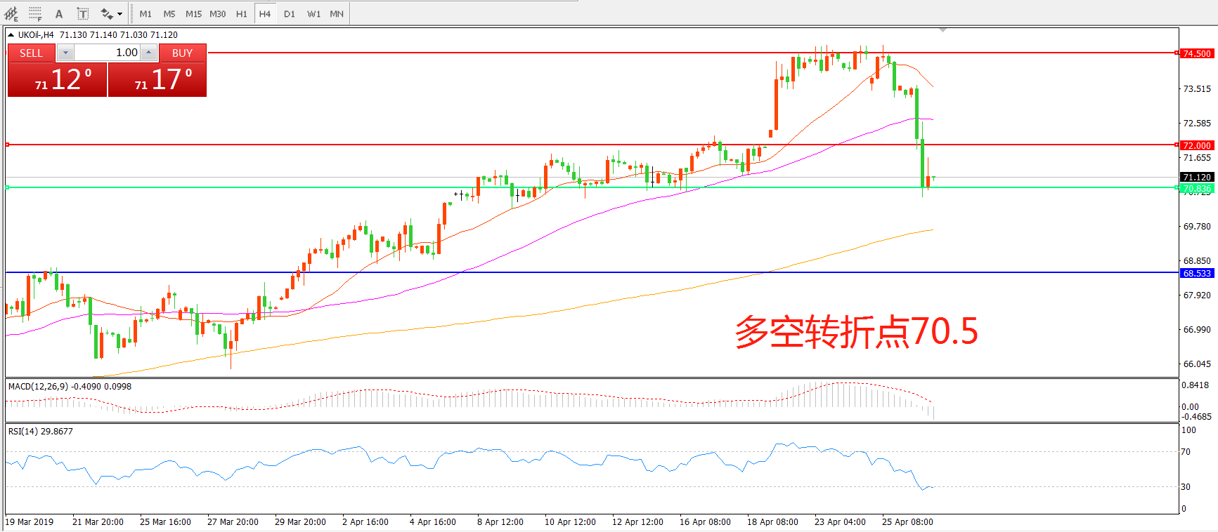交易策略:在70.50   之上看涨,目标72.00    74.50