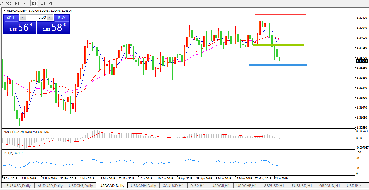 美元兑加元USDCAD 日线图: