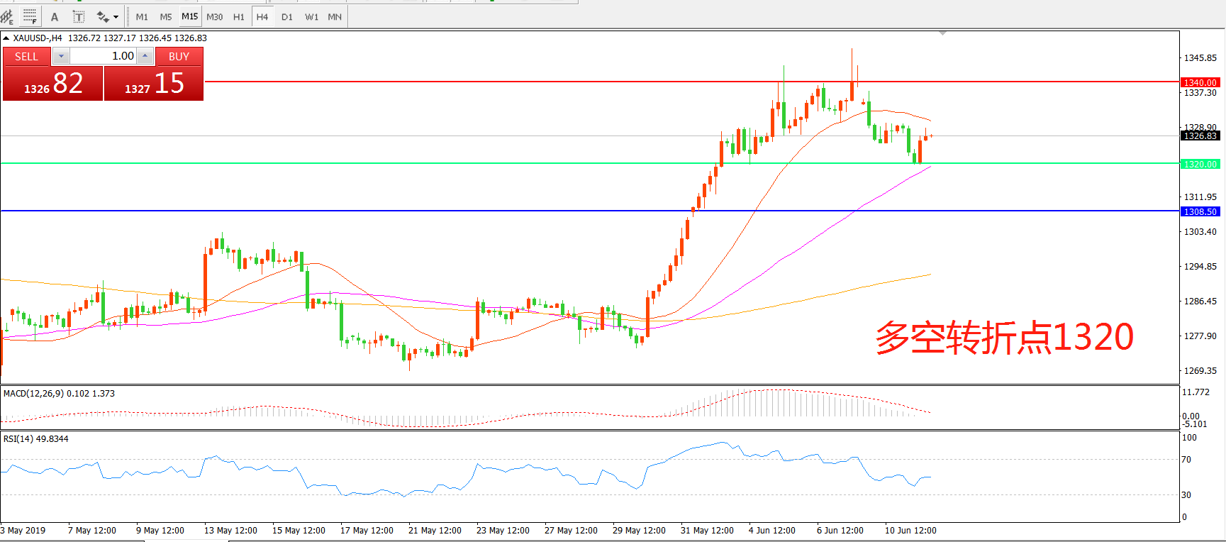 多空转折点:1320.00