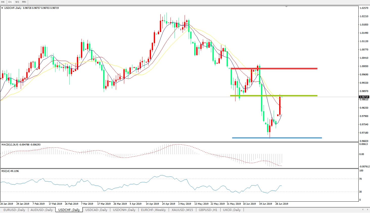 美元兑瑞郎USDCHF 日线图: