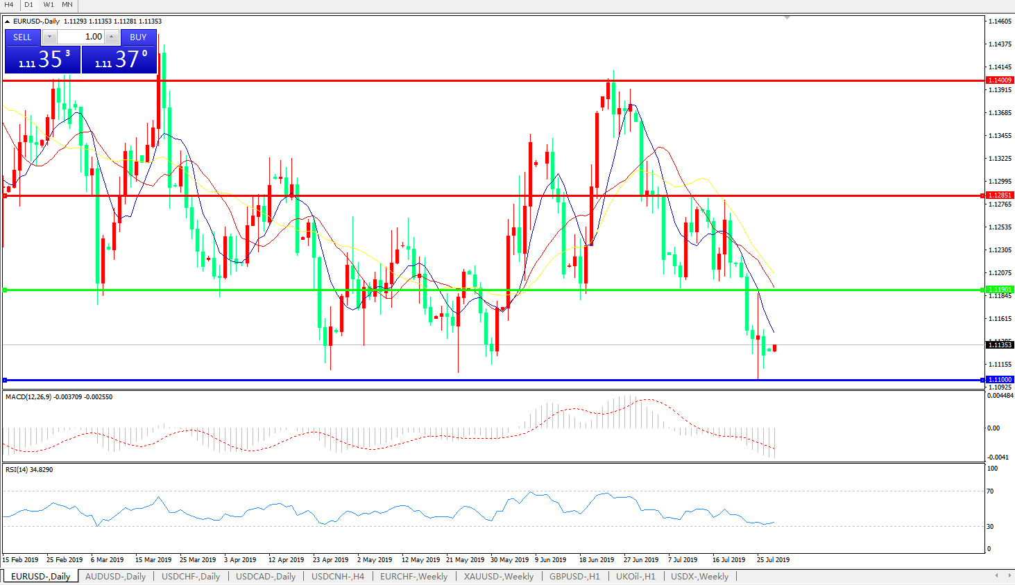 支撑位:1.1190、1.1110