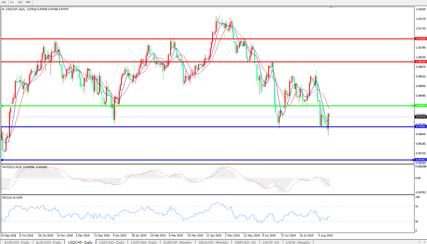 支撑位:0.9700、0.9542