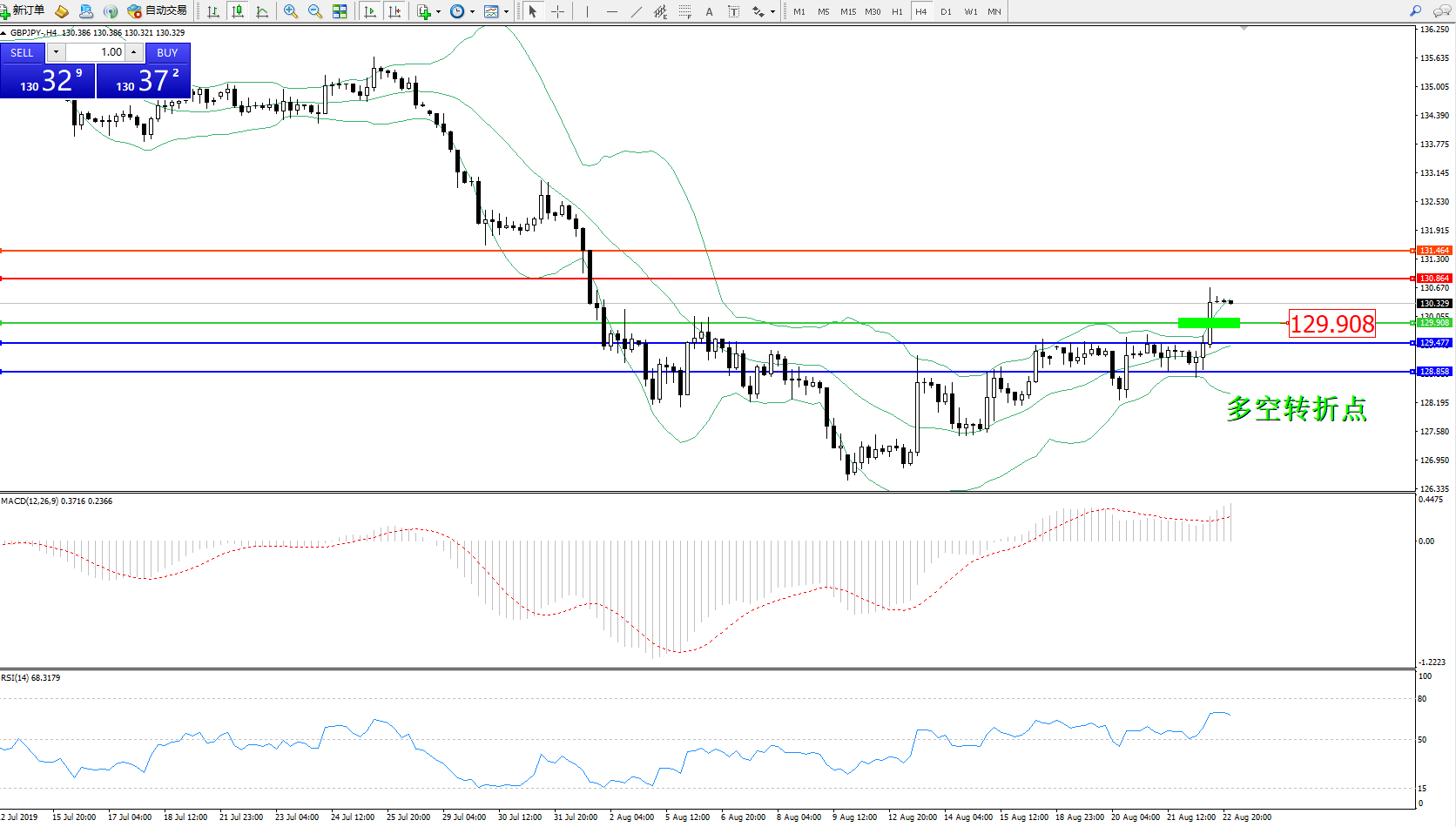交易策略:129.908上方看涨,目标130.864131.464