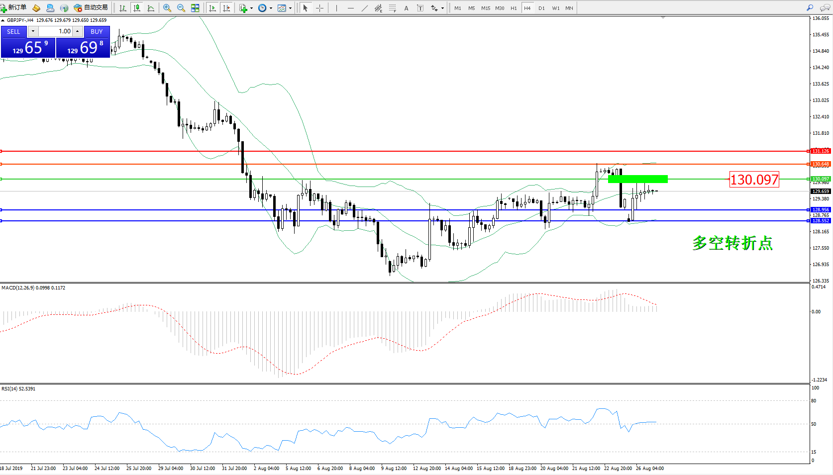 交易策略:130.097下方看跌,目标128.956128.552