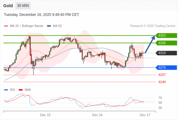 在 4275 之上,看涨,目标价位为 4335 ,然后为 4353 。