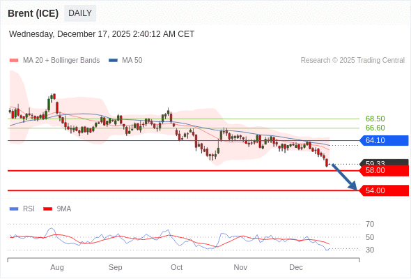 在 64.10 之下,看跌,目标价位为 58.00 ,然后为 54.00 。