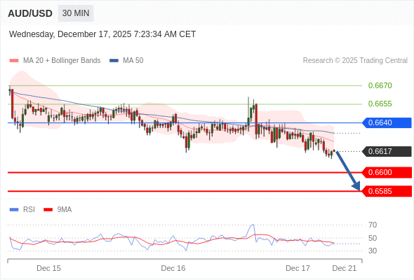 在 0.6640 之下,看跌,目标价位为 0.6600 ,然后为 0.6585 。
