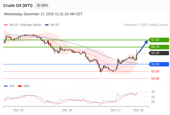 在 55.50 之上,看涨,目标价位为 56.70 ,然后为 57.20 。