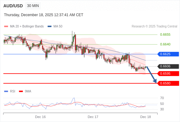 在 0.6625 之下,看跌,目标价位为 0.6595 ,然后为 0.6580 。