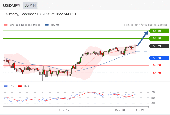 在 155.30 之上,看涨,目标价位为 156.10 ,然后为 156.40 。