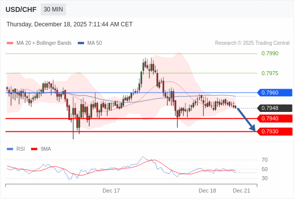 在 0.7960 之下,看跌,目标价位为 0.7940 ,然后为 0.7930 。