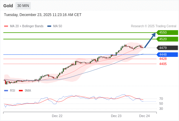 在 4448 之上,看涨,目标价位为 4520 ,然后为 4550 。