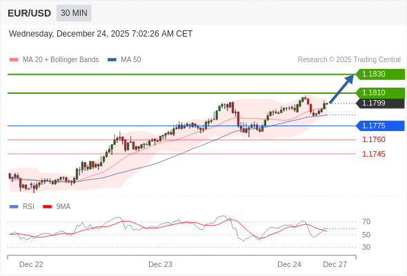 在 1.1775 之上,看涨,目标价位为 1.1810 ,然后为 1.1830 。