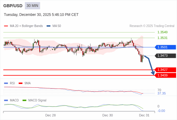 英镑/美元 当日内 : 看跌,在 1.3501 之下。