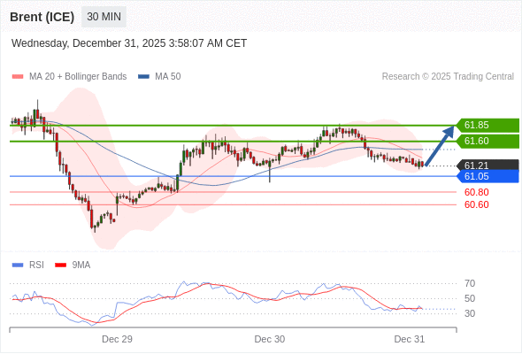 在 61.05 之上,看涨,目标价位为 61.60 ,然后为 61.85 。