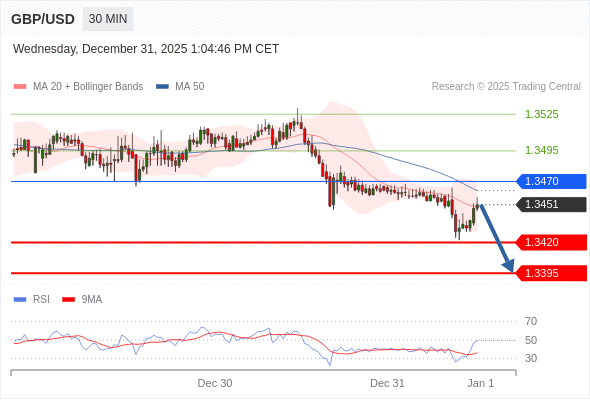 交易策略: 在 1.3470 之下,看跌,目标价位为 1.3420 ,然后为 1.3395 。