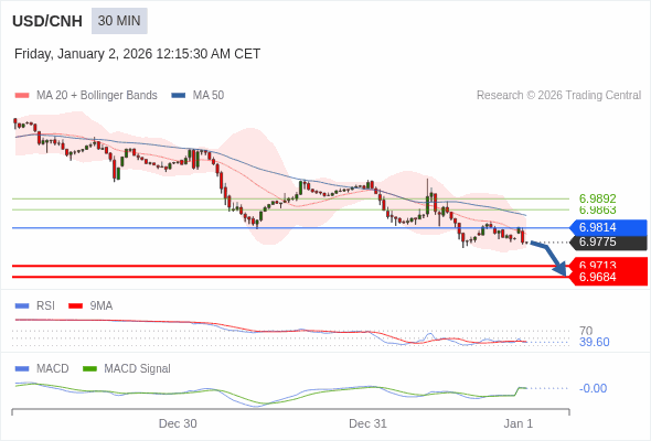 美元/人民币 当日内 : 看跌,在 6.9814 之下。