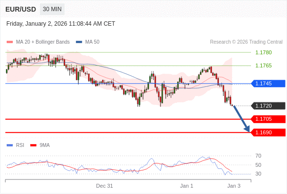 在 1.1745 之下,看跌,目标价位为 1.1705 ,然后为 1.1690 。