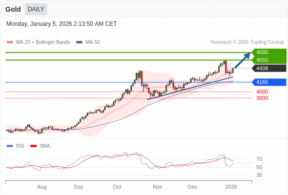 在 4165 之上,看涨,目标价位为 4550 ,然后为 4680 。