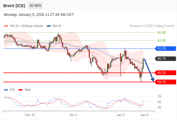 在 61.20 之下,看跌,目标价位为 60.15 ,然后为 59.75 。