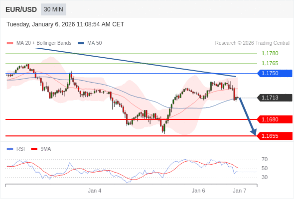 在 1.1750 之下,看跌,目标价位为 1.1680 ,然后为 1.1655 。