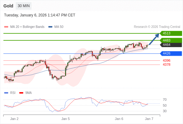 在 4426 之上,看涨,目标价位为 4483 ,然后为 4513 。