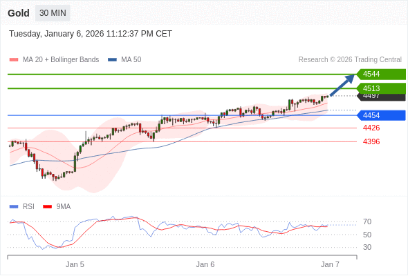 在 4454 之上,看涨,目标价位为 4513 ,然后为 4544 。