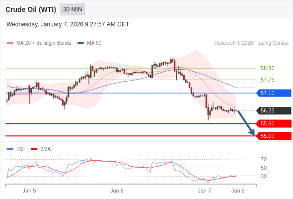 在 57.10 之下,看跌,目标价位为 55.60 ,然后为 55.00 。