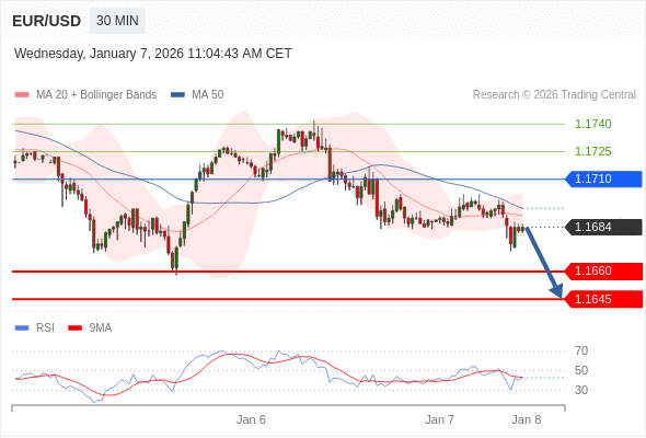 交易策略: 在 1.1710 之下,看跌,目标价位为 1.1660 ,然后为 1.1645 。