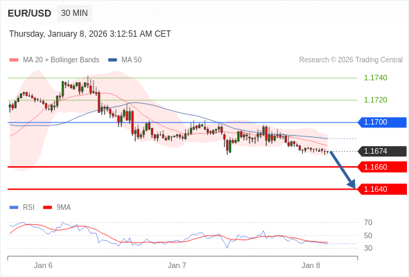 在 1.1700 之下,看跌,目标价位为 1.1660 ,然后为 1.1640 。
