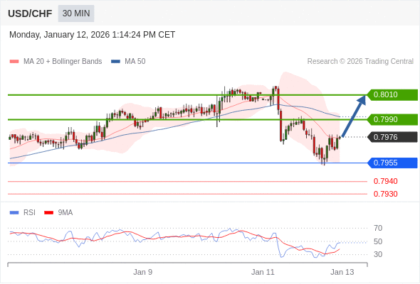 在 0.7955 之上,看涨,目标价位为 0.7990 ,然后为 0.8010 。