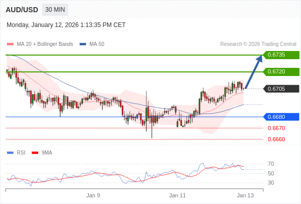在 0.6680 之上,看涨,目标价位为 0.6720 ,然后为 0.6735 。