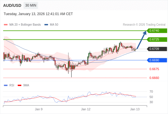 在 0.6690 之上,看涨,目标价位为 0.6725 ,然后为 0.6740 。