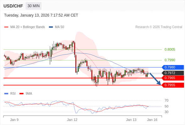 在 0.7980 之下,看跌,目标价位为 0.7965 ,然后为 0.7955 。