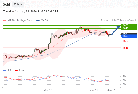 在 4575 之上,看涨,目标价位为 4615 ,然后为 4630 。