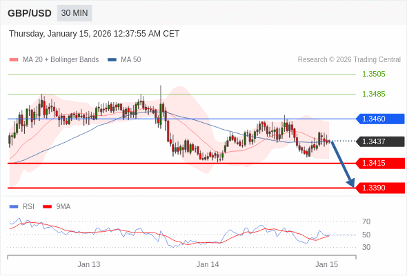 在 1.3460 之下,看跌,目标价位为 1.3415 ,然后为 1.3390 。