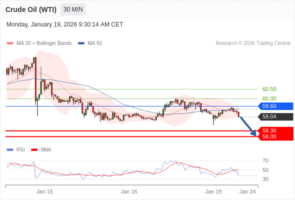 交易策略: 在 59.60 之下,看跌,目标价位为 58.30 ,然后为 58.00 。