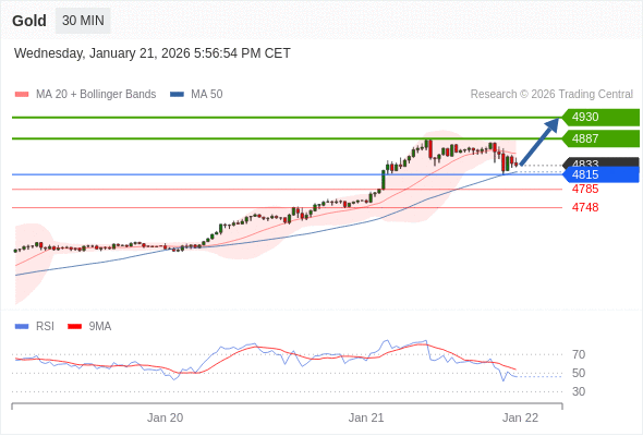 在 4815 之上,看涨,目标价位为 4887 ,然后为 4930 。