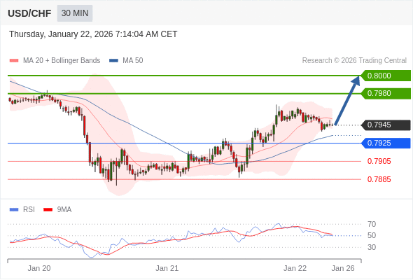 在 0.7925 之上,看涨,目标价位为 0.7980 ,然后为 0.8000 。