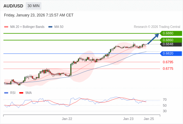 在 0.6820 之上,看涨,目标价位为 0.6860 ,然后为 0.6880 。