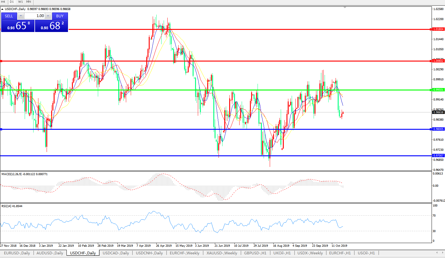 交易策略:0.9950下方看跌,目标0.9800、0.9700