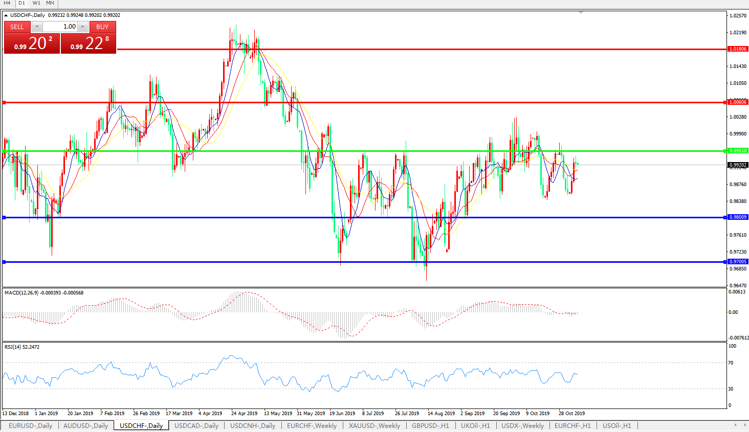 交易策略:0.9950下方看跌,目标0.98000.9700