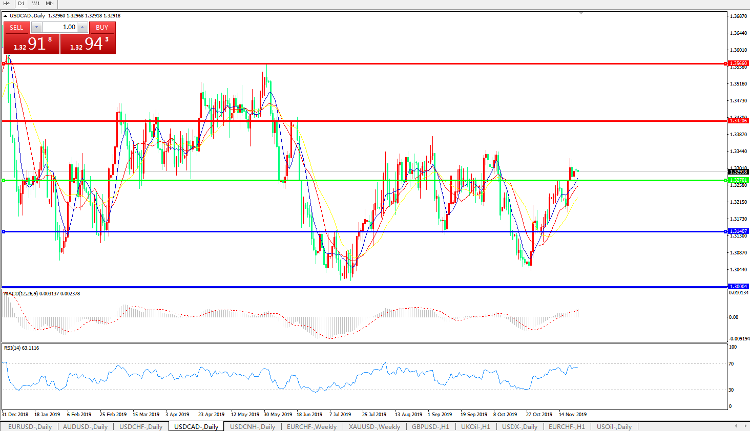 美元兑加元USDCAD 日线图: