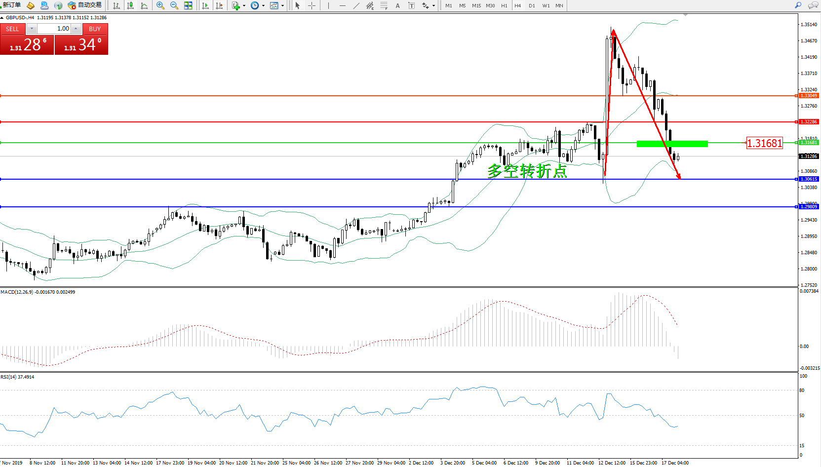 交易策略:1.31681下方看跌,目标1.306151.29809