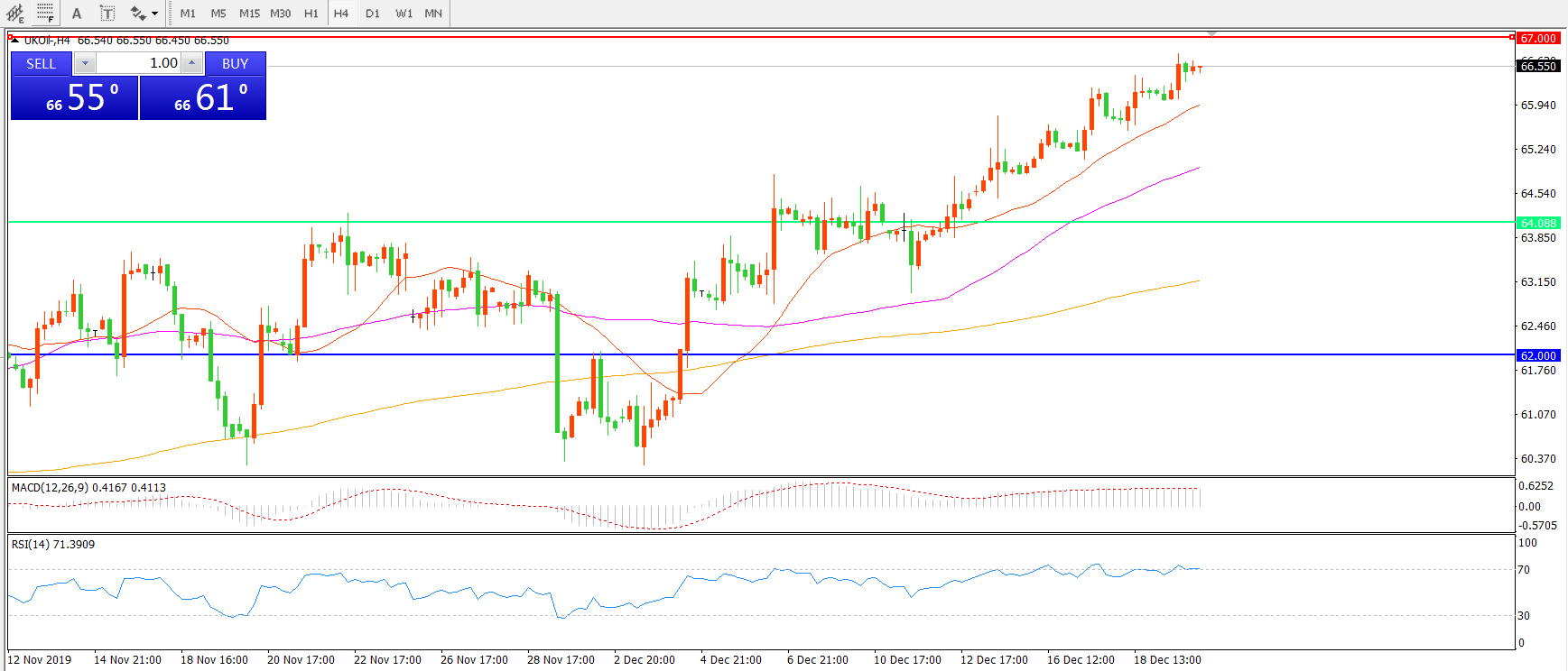 交易策略:在64.00之上看涨,目标67.00    69.50