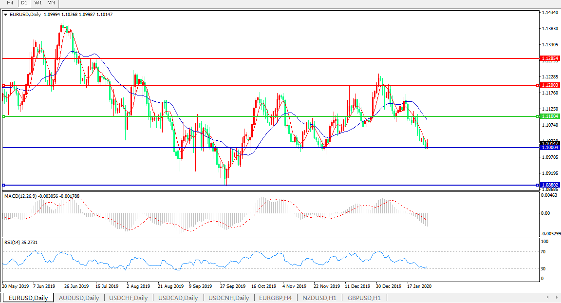 交易策略:1.1100下方看跌,目标1.1000、1.0880
