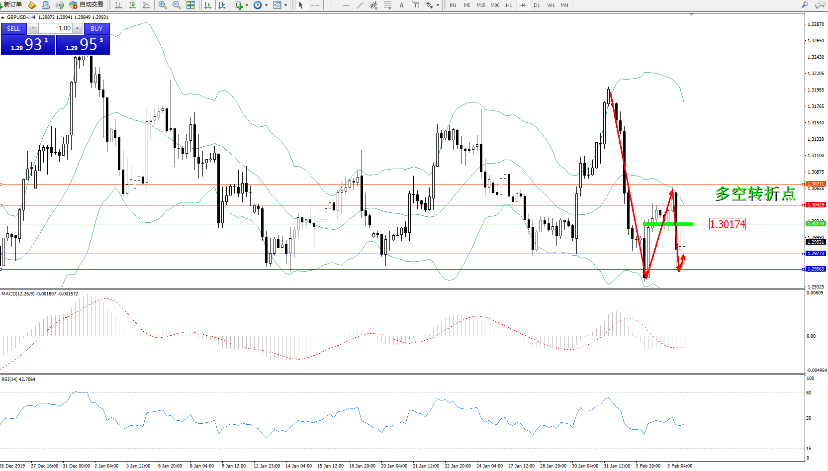 交易策略:1.30174下方看跌,目标1.29773、1.29565