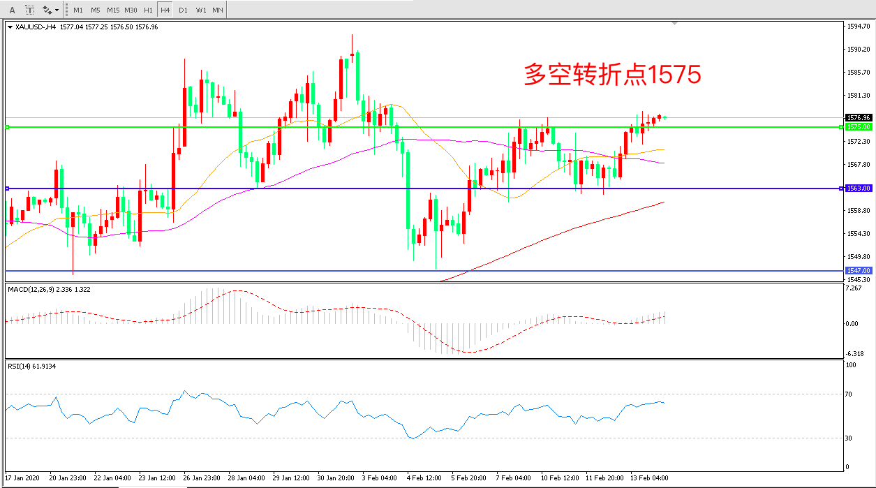多空转折点:1575.00
